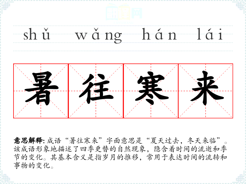 - 日常对话:在朋友聊天时,可以用来感慨时间的飞逝,比如“暑往寒来,转眼间又是一年”。