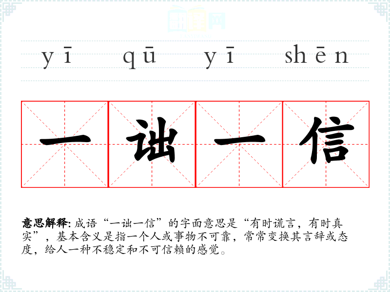 在现代社会,特别是在信息泛滥的时代,很多人对信息的真实性产生了怀疑,使用“一诎一信”来形容这种现象,能够体现出对诚信的重视与对虚伪的警惕。这一成语在日常交流中,可以用来提醒人们保持警惕,增强识别真伪的能力。