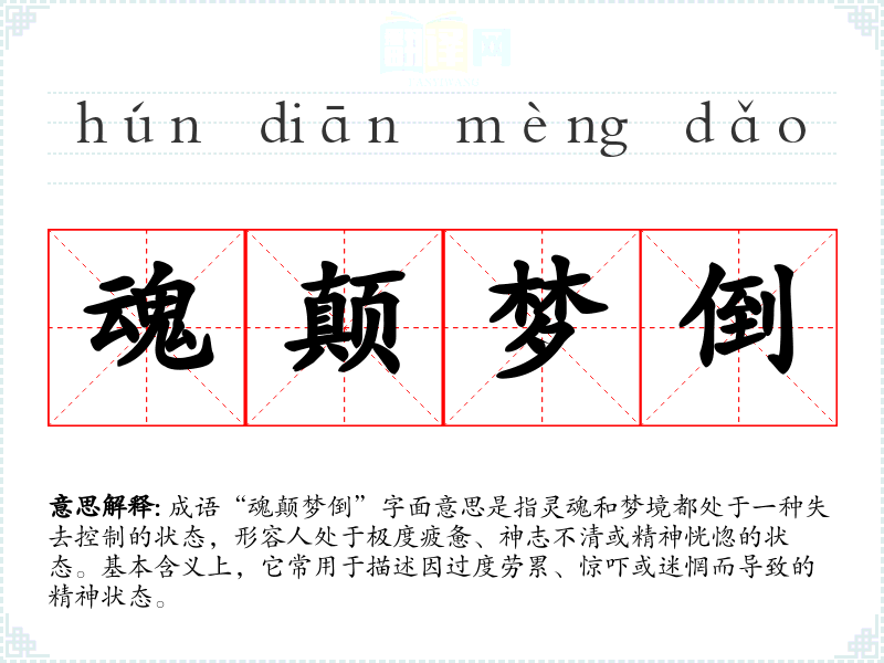 成语“魂颠梦倒”字面意思是指灵魂和梦境都处于一种失去控制的状态,形容人处于极度疲惫、神志不清或精神恍惚的状态。基本含义上,它常用于描述因过度劳累、惊吓或迷惘而导致的精神状态。