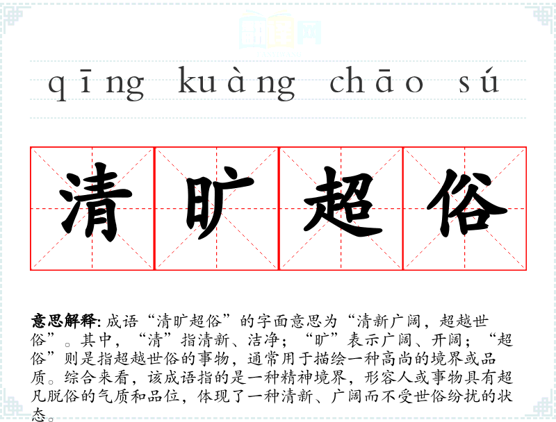 通过对“清旷超俗”的学,我认识到这不仅是一个成语,更是一种理想的生活态度。在学语言的过程中,理解这些成语的深层含义和文化背景,有助于我更好地表达思想,同时也能够激励我在生活中追求更高的境界。这种追求清新、广阔和超越世俗的精神,永远值得我们去践行和传承。