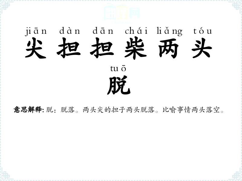 脱:脱落。两头尖的担子两头脱落。比喻事情两头落空。 |
