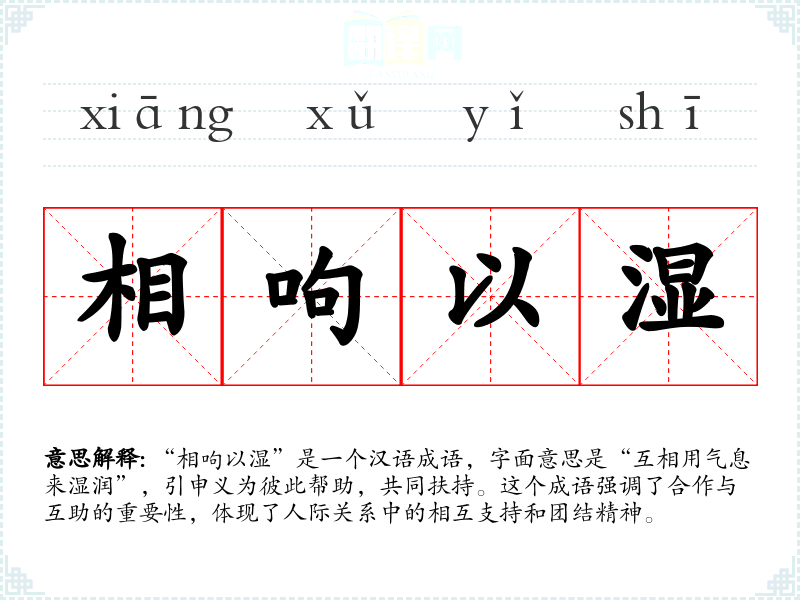 通过对“相呴以湿”的学,我认识到这个成语不仅仅是一个语言符号,更是反映了深厚的人际关系哲学和社会价值观。在语言学和表达中,理解和运用这样的成语可以丰富我的沟通方式,加深对文化的理解,增强表达的力量。