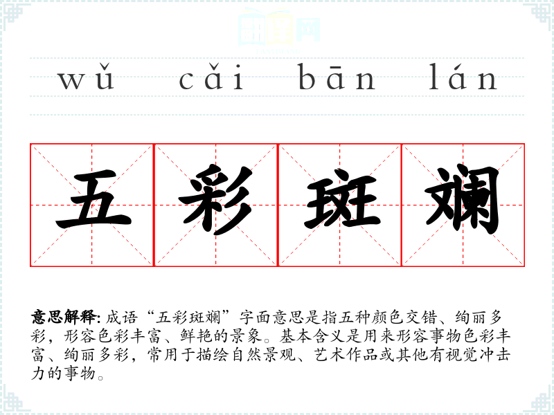 “五彩斑斓”并没有特定的历史典故或文学出处,它的构成主要是由“彩”和“斑斓”两个词语组成。“彩”指颜色,而“斑斓”则形容色彩鲜艳、花纹多样。这种表达方式在古代诗词中常见,传达出一种丰富多彩的美感。