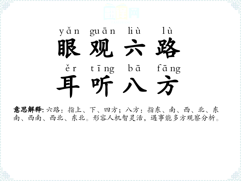观:看;望:向远处看。形容四处观望,察看动静。 |