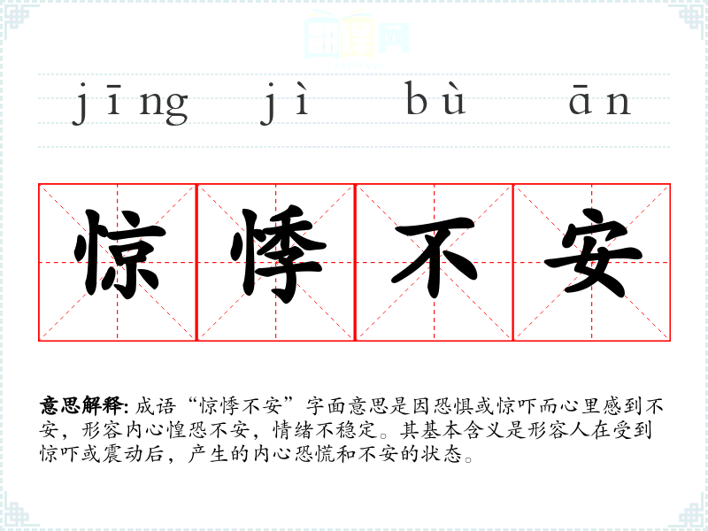在文化中,情感的表达非常重要,“惊悸不安”反映了人们对内心恐惧与不安的敏感。现代社会中,随着生活节奏的加快,人们面临的压力和突发增多,这个成语的适用性依然很高,能够有效传达当代人内心的焦虑感。