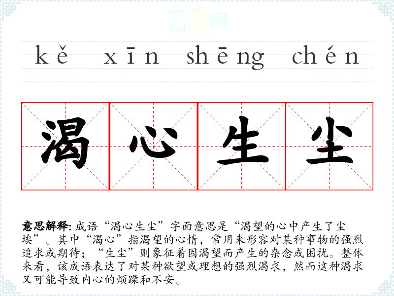 - 演讲:在演讲中提到追求理想过于强烈,导致内心不安的情况时,可以用“渴心生尘”来增强表达的力度。