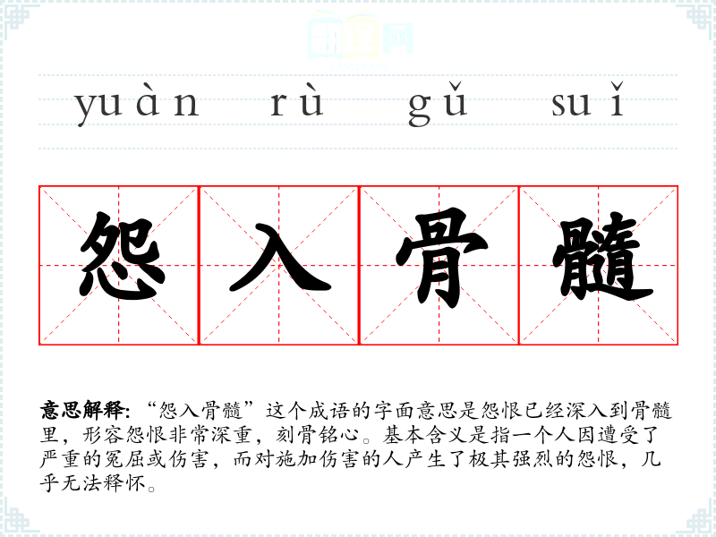 - “恨之入骨”:与“怨入骨髓”相似,皆形容对他人的恨意极深。