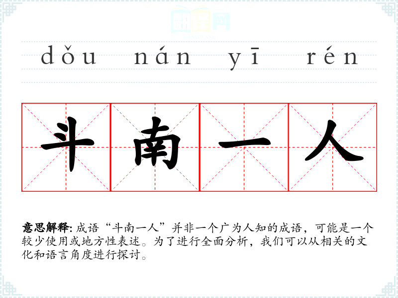 成语“斗南一人”并非一个广为人知的成语,可能是一个较少使用或地方性表述。为了进行全面分析,我们可以从相关的文化和语言角度进行探讨。
