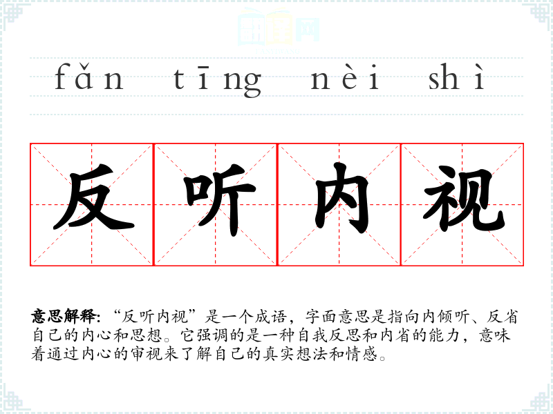 通过对“反听内视”的学,我意识到自我反省在个人成长和心理健康中的重要性。这个成语不仅丰富了我的语言表达,也让我更加注重内心的声音,这对于我的生活和学都具有积极的影响。