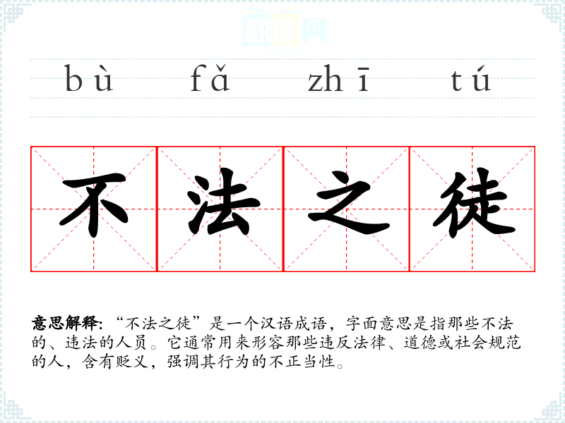 “不法之徒”是一个汉语成语,字面意思是指那些不法的、违法的人员。它通常用来形容那些违反法律、道德或社会规范的人,含有贬义,强调其行为的不正当性。