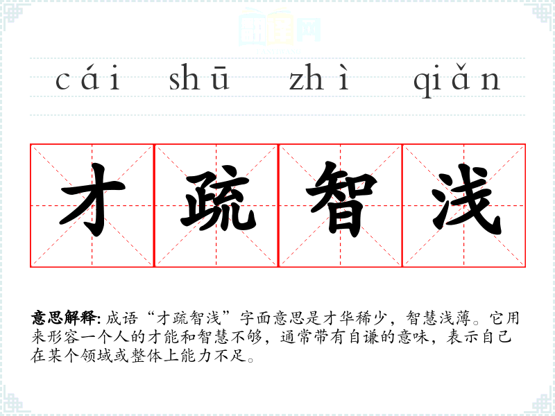 成语“才疏智浅”字面意思是才华稀少,智慧浅*。它用来形容一个人的才能和智慧不够,通常带有自谦的意味,表示自己在某个领域或整体上能力不足。