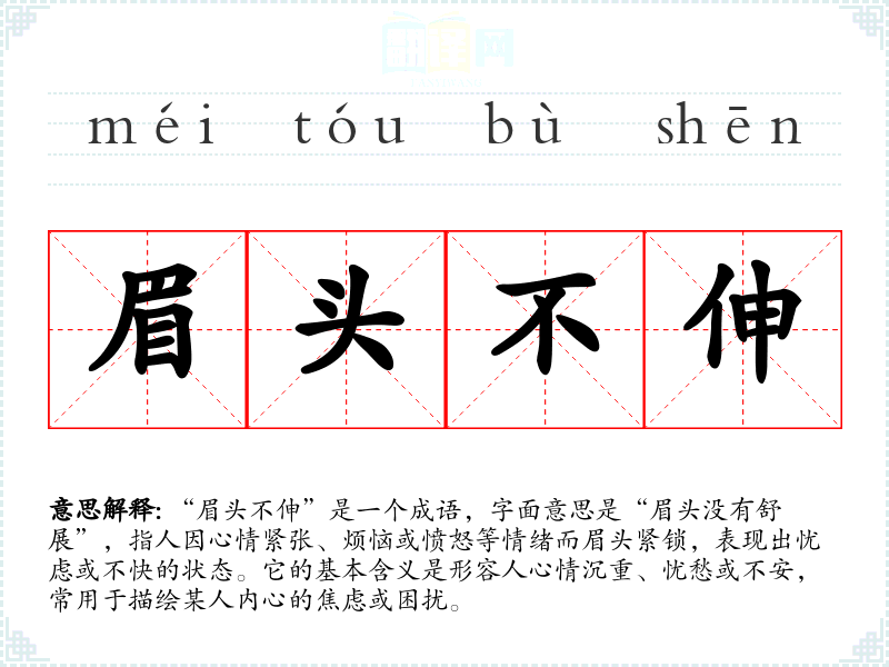 - 日常对话:用来表达关心,例如:“你最近怎么了?眉头不伸的,我很担心你。”