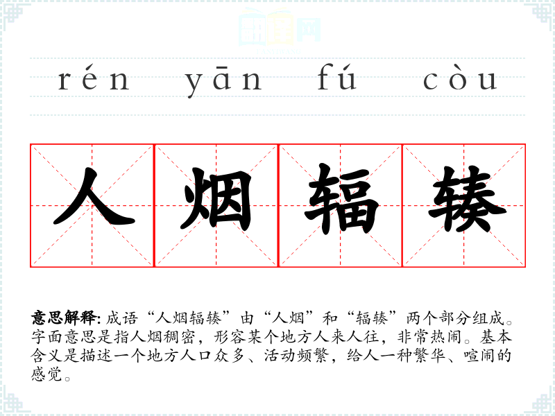 在**的文化背景中,“人烟辐辏”常常与节庆、庙会、集市等热闹场合联系在一起,反映了人们对热闹生活的向往。在现代社会,尤其是城市化进程加快的背景下,成语的使用也体现了人们对繁华、便利生活的追求。