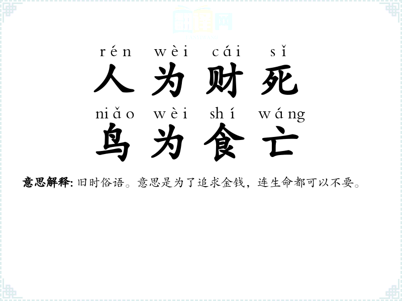 旧时俗语。意思是为了追求金钱,连生命都可以不要。 |