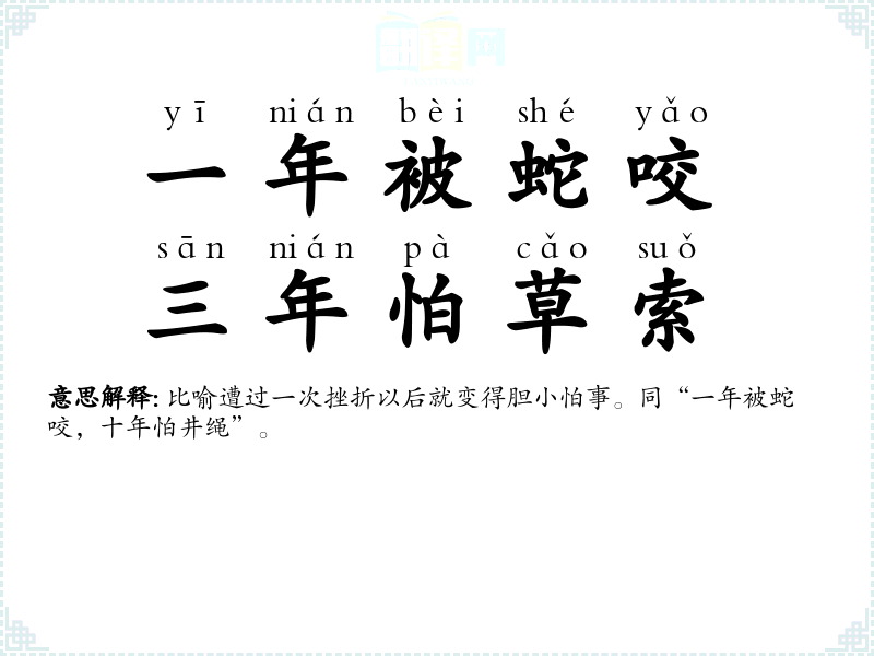 | 一年被蛇咬,十年怕井绳 |