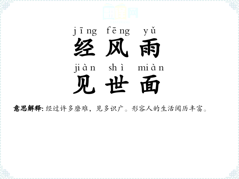 经:经历;智:智慧,聪明。亲身经历了某件事情,就能增长关于这方面的知识。 |