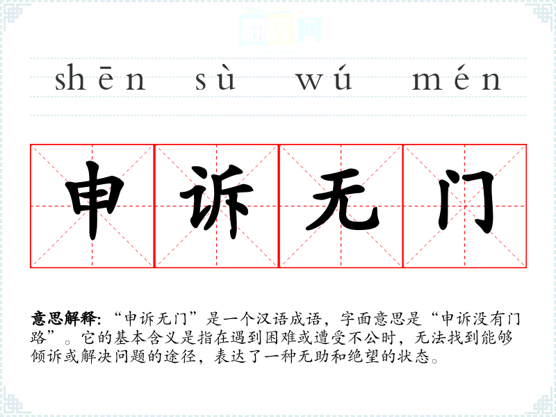 | 申诉无门 | 形容没有地方申诉自己的痛苦和冤屈。 |