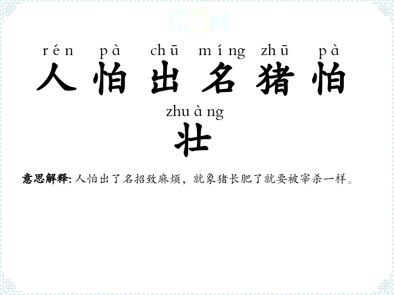 人怕出了名招致麻烦,就象猪长肥了就要被宰杀一样。 |