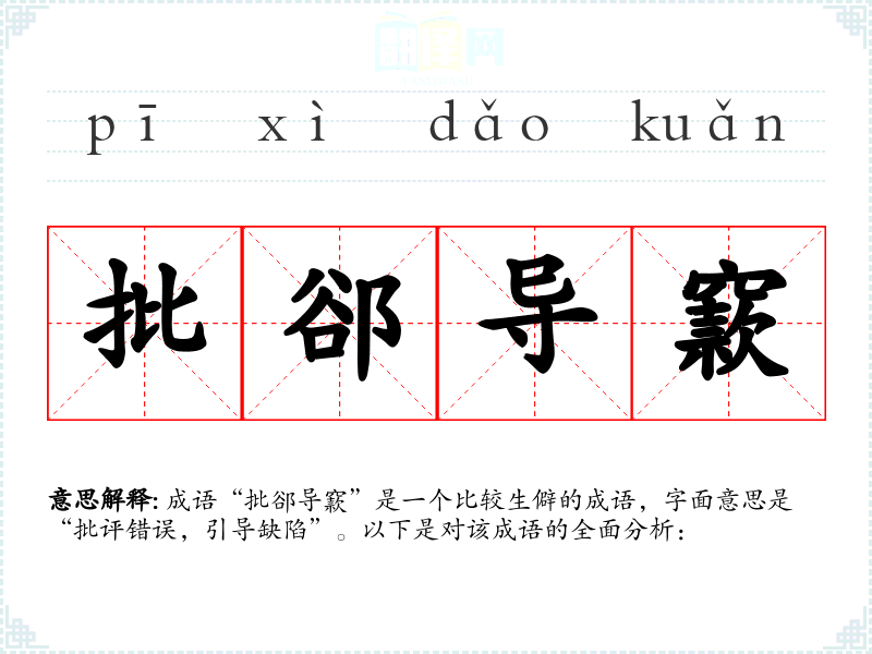 成语“批郤导窾”是一个比较生僻的成语,字面意思是“批评错误,引导缺陷”。以下是对该成语的全面分析: