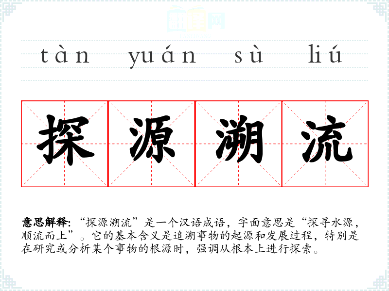 | 探源溯流 | 探:探索;溯:追寻;流:源流。探索和寻求事物的根源。 |