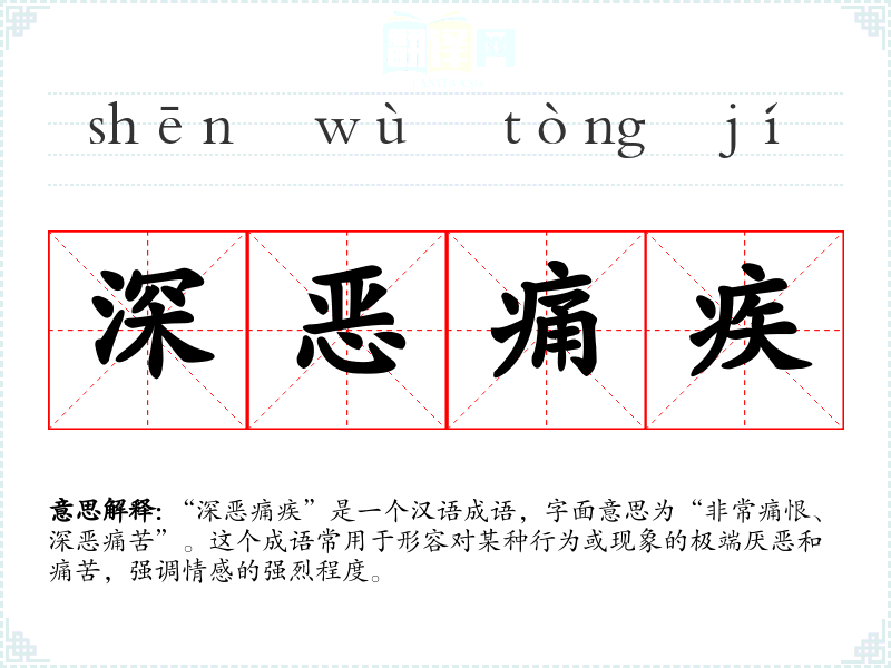 在英语中,可以用“deeply detest”或“abhor”来表达类似的情感,但这些词语的情感强度和文化背景可能与“深恶痛疾”有所不同。例如,英语表达更倾向于理性分析,而汉语则体现了更深的情感共鸣。