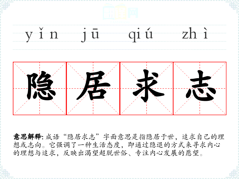 成语“隐居求志”字面意思是指隐居于世,追求自己的理想或志向。它强调了一种生活态度,即通过隐退的方式来寻求内心的理想与追求,反映出渴望超脱世俗、专注内心发展的愿望。