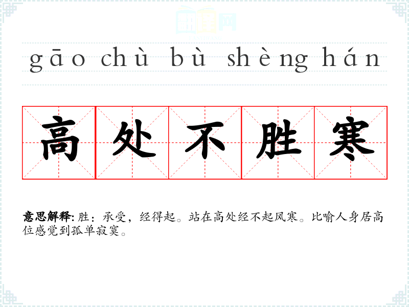 胜:承受,经得起。站在高处经不起风寒。比喻人身居高位感觉到孤单寂寞。