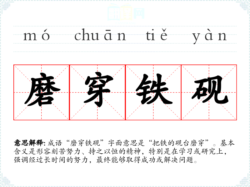 通过对“磨穿铁砚”的学,我深刻理解到坚持和努力是成功的关键。在语言学和表达中,这个成语不仅丰富了我的词汇,也让我在面对挑战时保持积极的态度。它激励我在追求目标时,保持耐心和毅力。