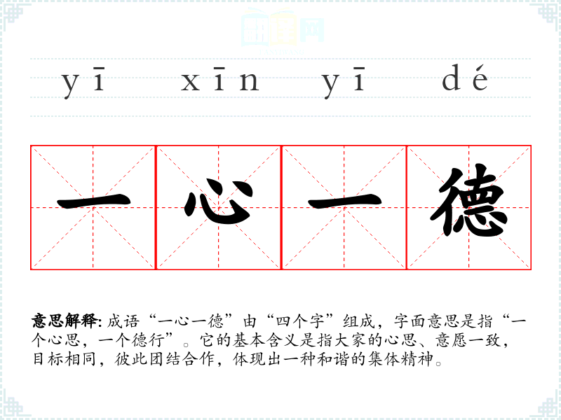 在传统文化中,“一心一德”反映了集体主义的价值观,强调家庭、团队、国家等集体的和谐与团结。在现代社会,这一成语依然适用,尤其在团队合作、社会等领域,强调共同目标和团结合作的重要性。