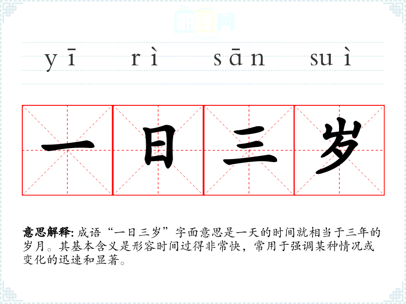 成语“一日三岁”字面意思是一天的时间就相当于三年的岁月。其基本含义是形容时间过得非常快,常用于强调某种情况或变化的迅速和显著。