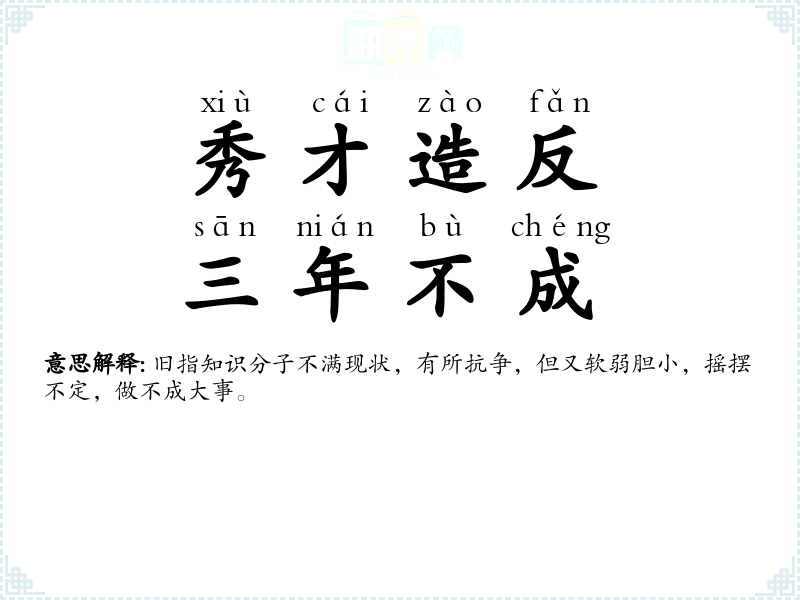 旧指知识分子不满现状,有所抗争,但又软弱胆小,摇摆不定,做不成大事。 |