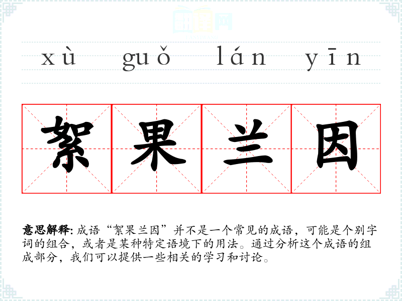 成语“絮果兰因”并不是一个常见的成语,可能是个别字词的组合,或者是某种特定语境下的用法。通过分析这个成语的组成部分,我们可以提供一些相关的学*和讨论。