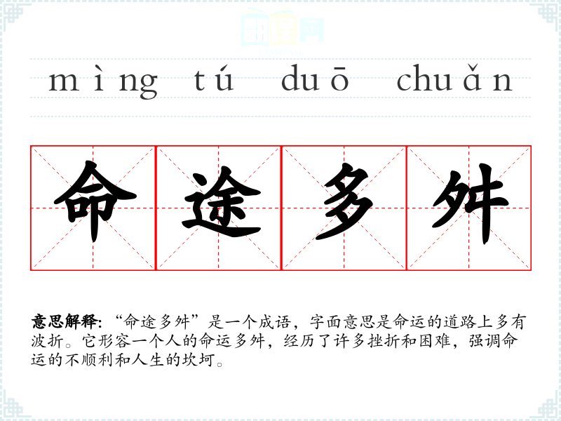 - 演讲:在激励性演讲中,可以用“命途多舛”来鼓励听众面对困难时保持勇气。