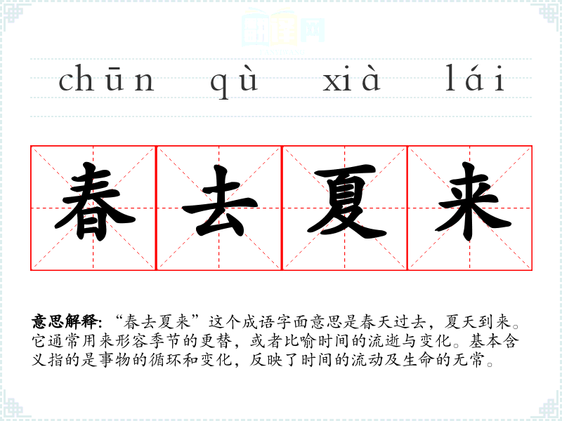 | 春去夏来 | 春天过去,夏天到来。形容时光流逝。 |