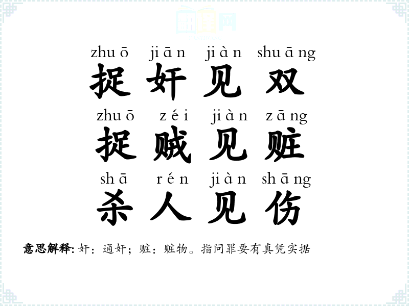 | 捉奸见双,捉贼见赃,杀人见伤 |