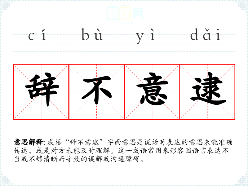 - 日常对话:朋友间的聊天中,若某人说了话却被误解,也可以用“辞不意逮”来形容这种情况。