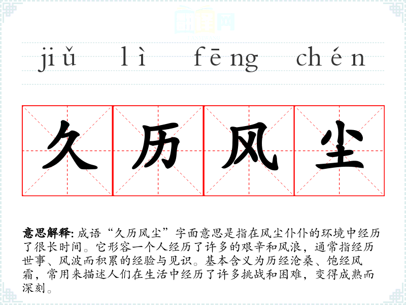 | 久历风尘 | 经历过很多艰苦的日子。 |