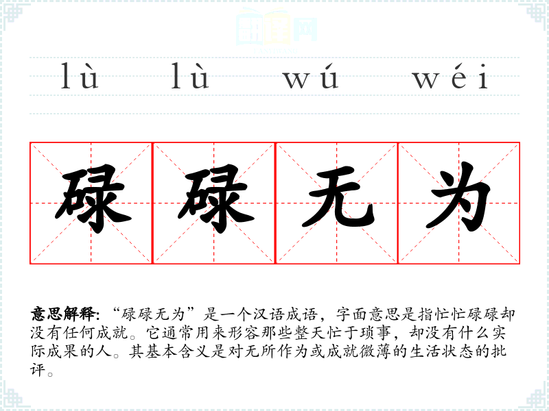 | 碌碌无为 | 平平庸庸,无所作为。 |