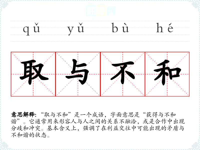 “取与不和”并没有明确的历史典故来源,可能是现代汉语中口语化的表达,反映了人际关系中的普遍现象。它可以被看作是对**传统文化中“和谐”思想的反思,强调在追求利益的过程中,不可避免地会有摩擦和不和。