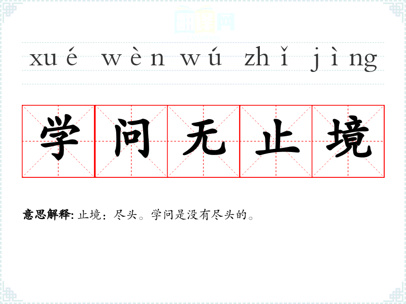 | 学问无止境 | 止境:尽头。学问是没有尽头的。 |