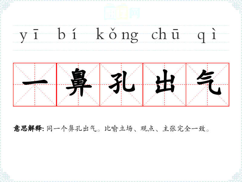 同一个鼻孔出气。比喻立场、观点、主张完全一致。 |