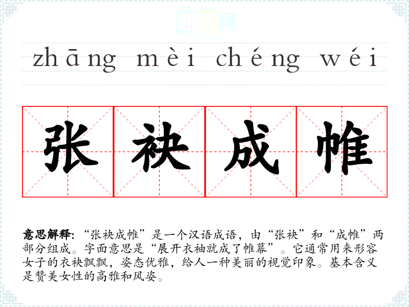 “张袂成帷”是一个汉语成语,由“张袂”和“成帷”两部分组成。字面意思是“展开衣袖就成了帷幕”。它通常用来形容女子的衣袂飘飘,姿态优雅,给人一种美丽的视觉印象。基本含义是赞美女性的高雅和风姿。