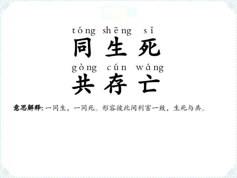 ①指同欢乐共忧患。形容关系密切,利害一致。②偏指共患难。亦作“同休等戚”。 |