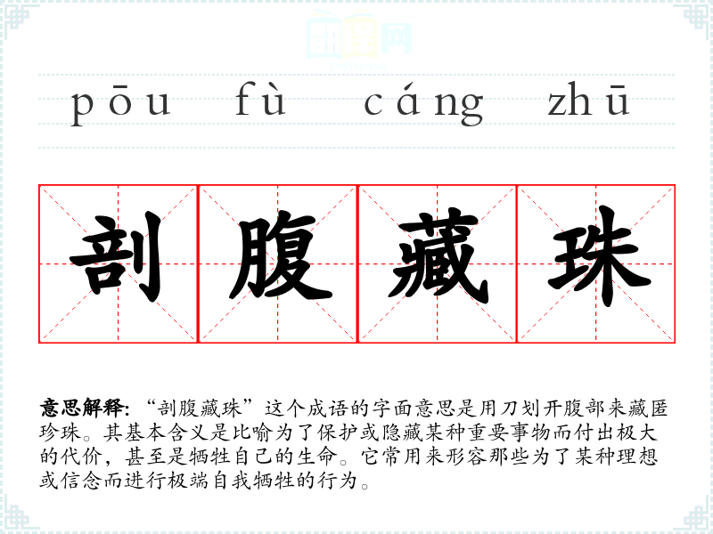 通过对“剖腹藏珠”的学,我认识到它不仅仅是一个成语,更是对无私奉献精神的深刻反映。它在语言学和表达中具有重要意义,因为它提醒我们思考理想与自我之间的关系,以及在生活中我们愿意为之付出什么。