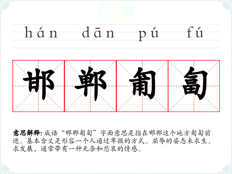 成语“邯郸匍匐”字面意思是指在邯郸这个地方匍匐前进。基本含义是形容一个人通过卑微的方式、屈辱的姿态来求生、求发展,通常带有一种无奈和悲哀的情感。