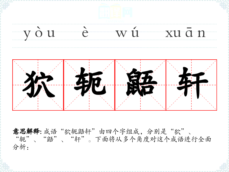 成语“狖轭鼯轩”由四个字组成,分别是“狖”、“轭”、“鼯”、“轩”。下面将从多个角度对这个成语进行全面分析: