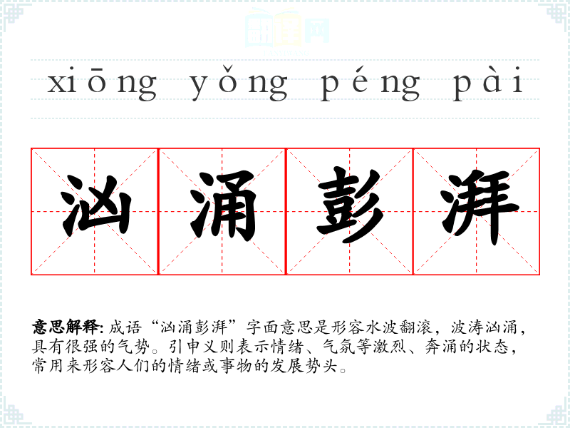 - 澎湃汹涌:与“汹涌彭湃”相似,强调情感的激烈和强烈。