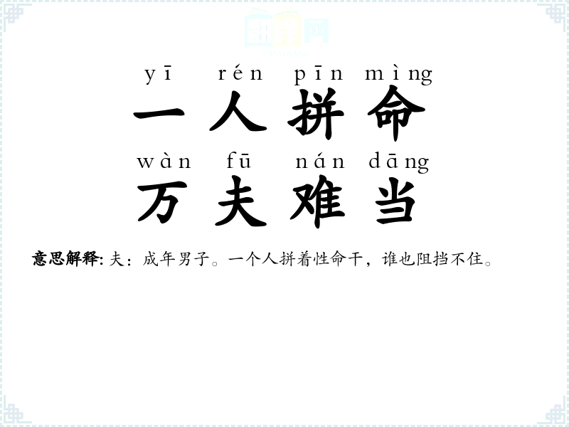 夫:成年男子。一个人拼着性命干,谁也阻挡不住。 |