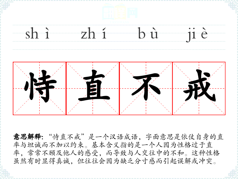 - 虽然他的直言不讳让人尊敬,但恃直不戒也让他在社交中遭遇了不少麻烦。