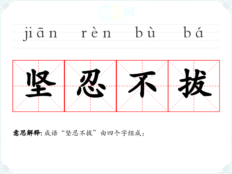 成语“坚忍不拔”由四个字组成:
